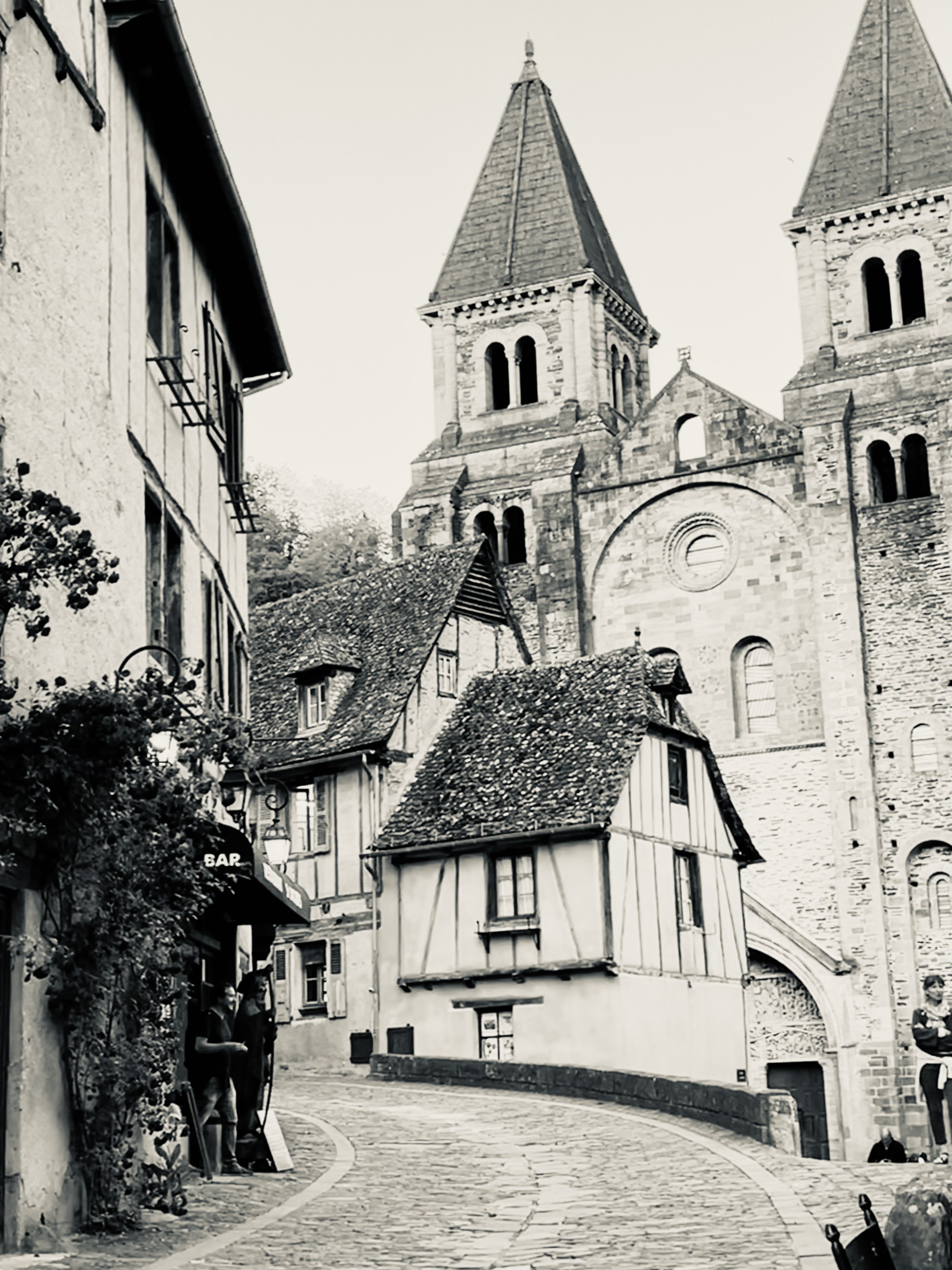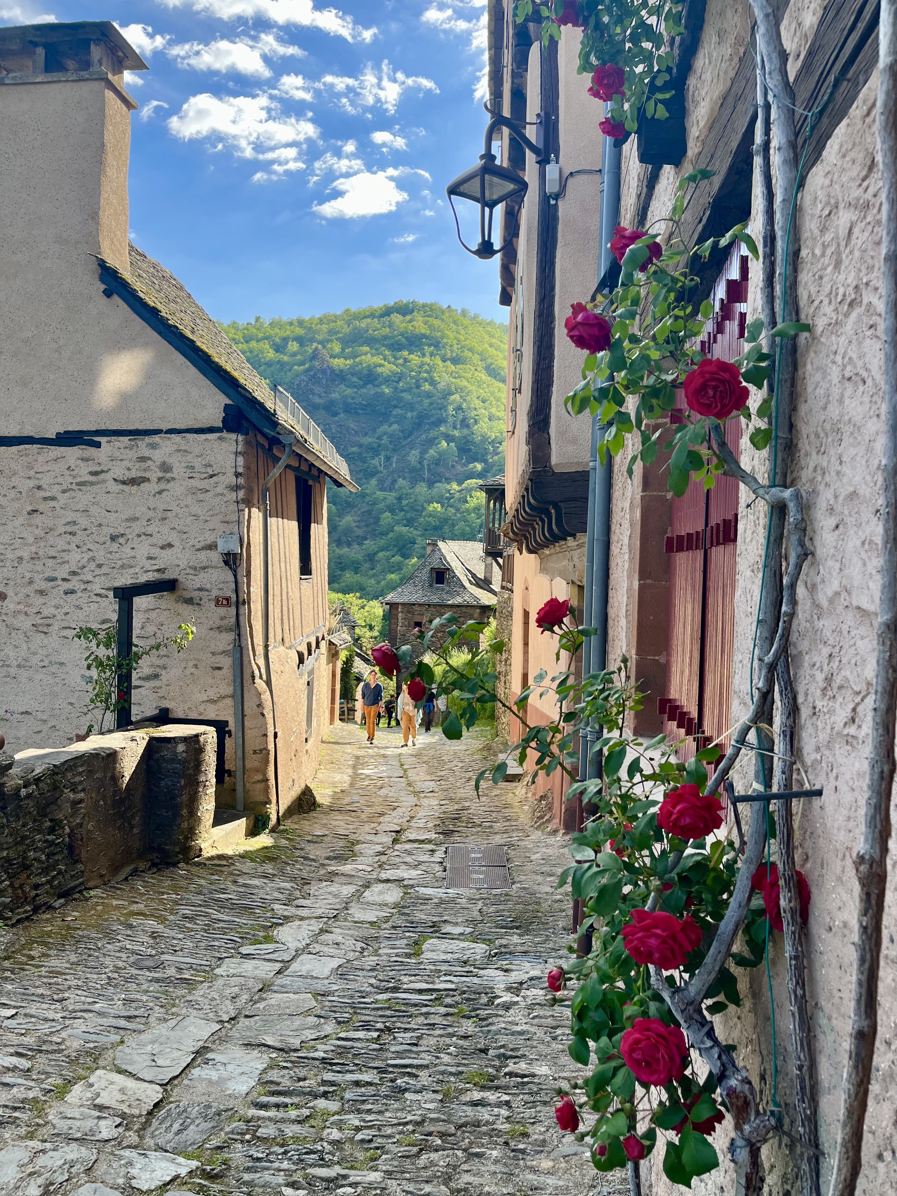 Pas simple pour arriver en voiture, les 6 euros1 de parking correspondent à une taxe pour alimenter les caisses du village qui le mérite bien. Cheminer dans les ruelles pavées à l’ancienne, déambuler devant ces vieilles bâtisses qui ont su garder leur charme rustique. Peu de pèlerins en août et peu de visiteurs le matin c’était super.